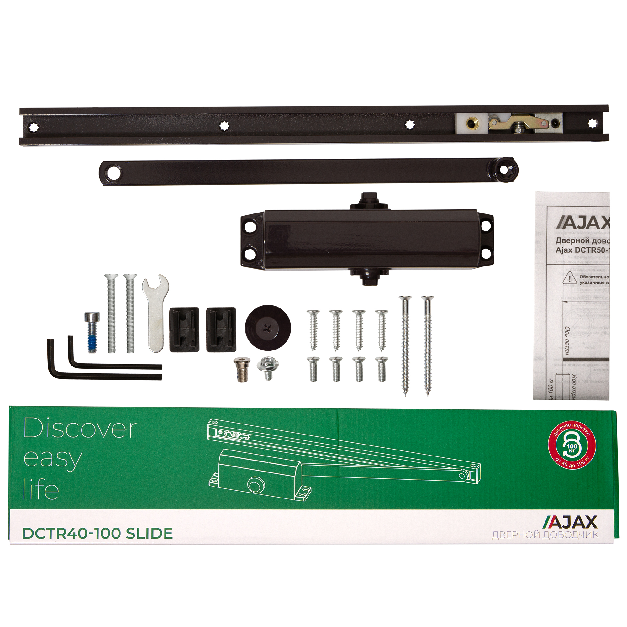 Универсальный доводчик на скользящей тяге AJAX™ DCTR40-100 великолепно подойдет для дверных полотен весом от 40 до 100кг. Рекомендован для установки на все стандартные типы металлических, деревянных и пластиковых дверей. Один доводчик DCTR40-100 может заменить несколько моделей с более узкими весовыми характеристиками, что позволит оптимизировать склад и неплохо сэкономить! Гарантия 1 год. Цвет : коричневый.