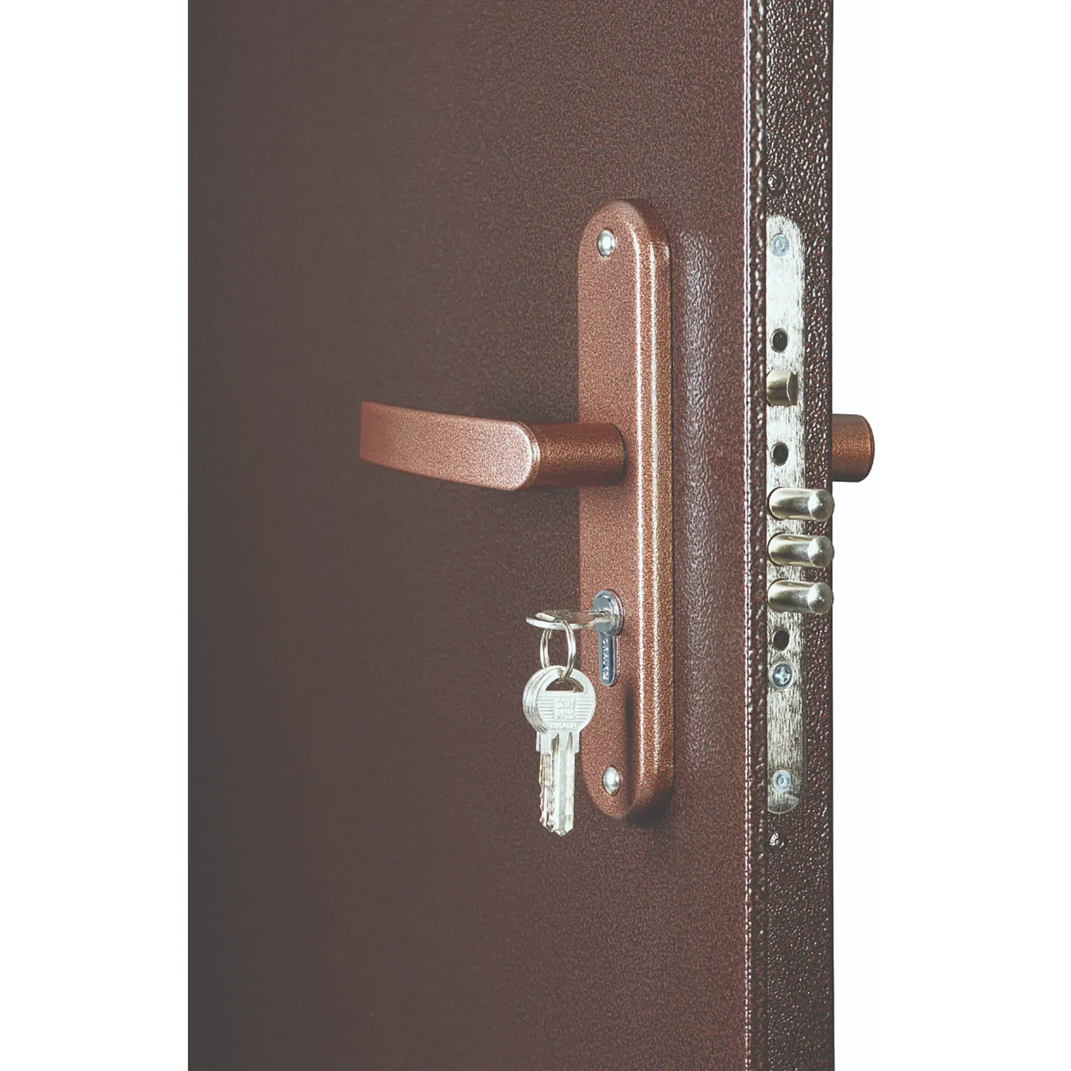 • Ручка на планке в комплекте с замком, окрашенная в медный цвет.