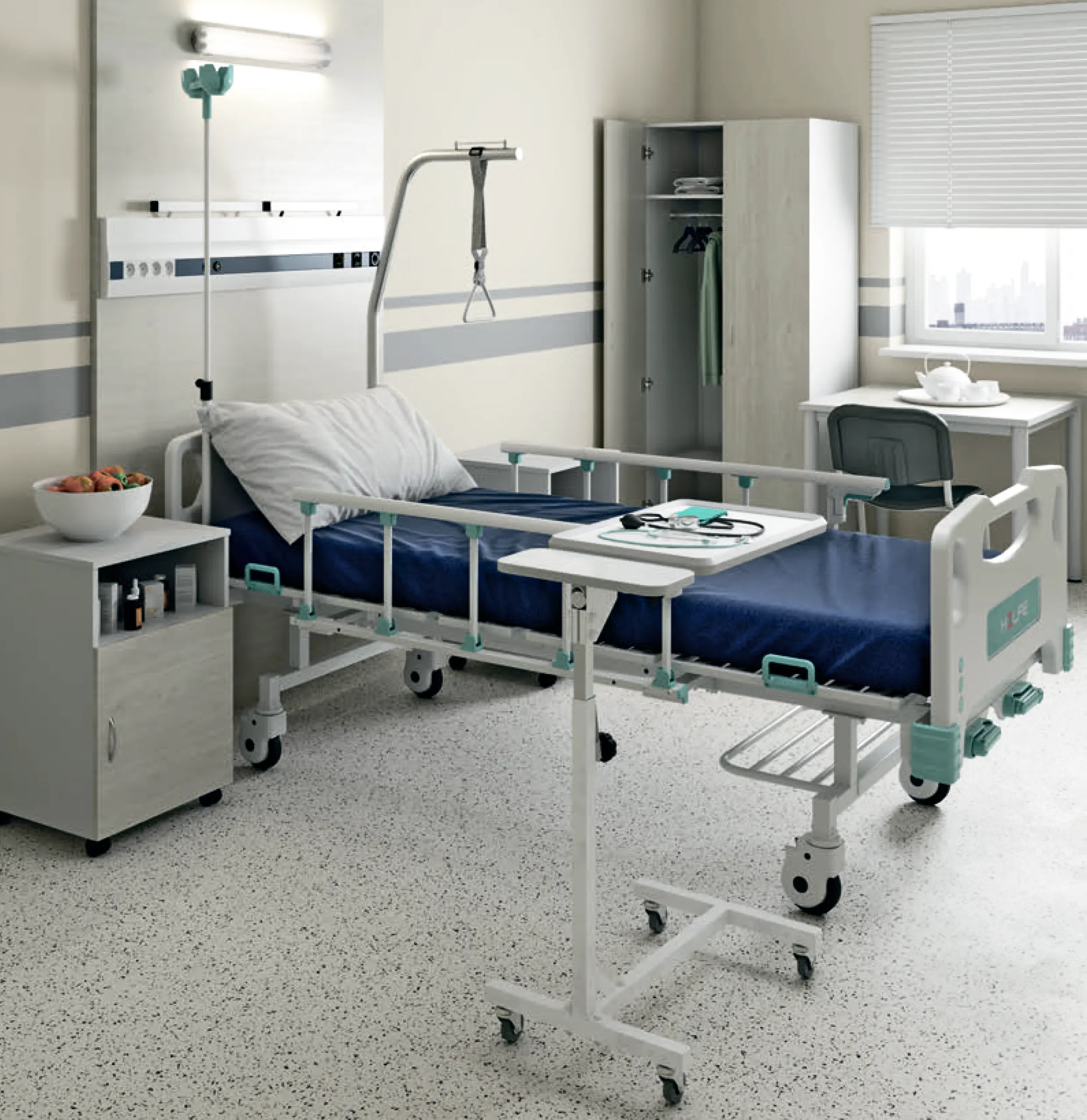 Функциональная медицинская кровать с механической регулировкой секций предназначены для ухода, диагностики, лечения и наблюдения за пациентом в стационарных медицинских учреждениях, и в домашних условиях