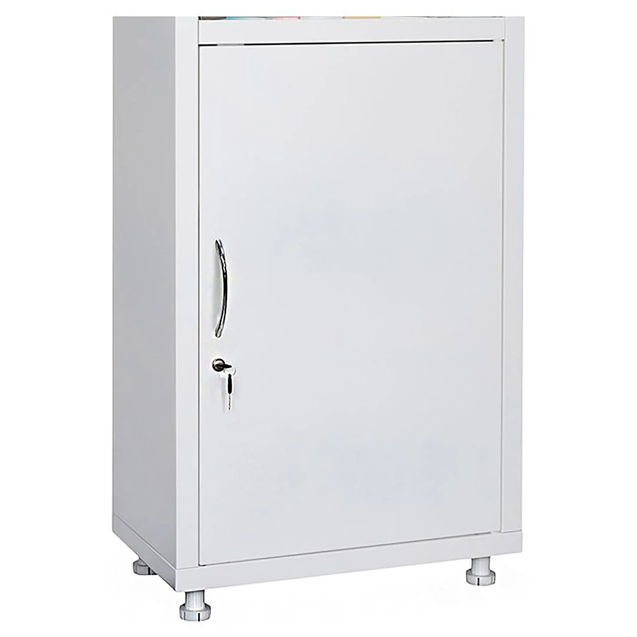 Шкаф предназначен для хранения медикаментов, инструментов, больничных документов, карточек пациентов в медицинских учреждениях и организациях. Изготовлены из стали, толщина корпуса 0,6мм, толщина двери 0,7мм, толщина стекла двери 4мм, толщина стекла полки 5мм. Хромированные магнитные защелки, фиксируют дверь в закрытом состоянии (устанавливаются на стеклянные двери). Комплектуется ключевыми замками Практик (1000 комбинаций), (замок устанавливается только на металлические двери). Максимальная нагрузка на металлическую полку - 30 кг, на стеклянную полку – 10 кг. Поставляются в разобранном виде, в комплект поставки входят четыре регулируемые опоры (высота-100 мм, диапазон регулировки: 95-125 мм).Опция: установка трейзера. Окрашен порошковой краской. Цвет — белый (RAL 9016)