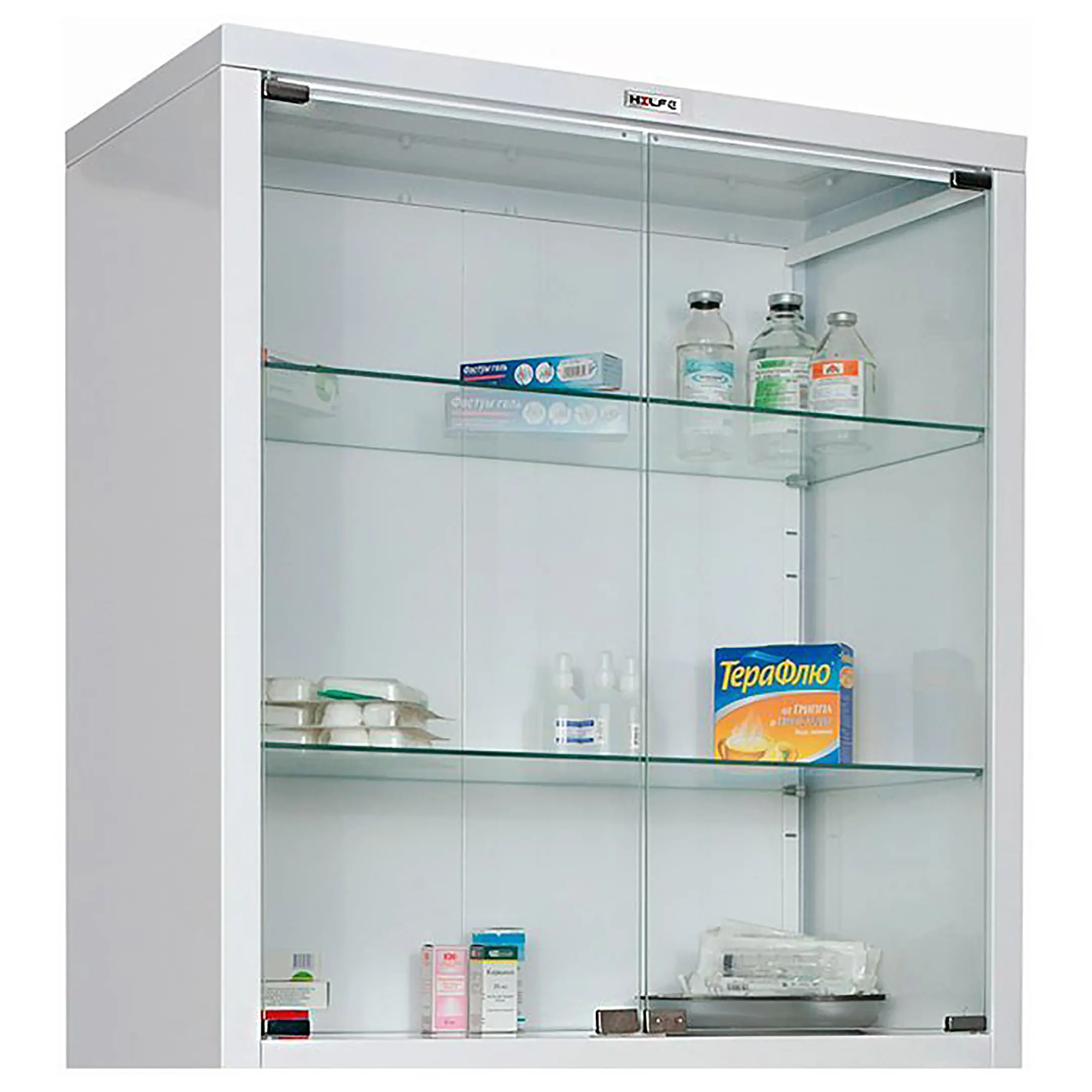 Шкаф предназначен для хранения медикаментов, инструментов, больничных документов, карточек пациентов в медицинских учреждениях и организациях. Изготовлены из стали, толщина корпуса 0,6мм, толщина двери 0,7мм, толщина стекла двери 4мм, толщина стекла полки 5мм. Хромированные магнитные защелки, фиксируют дверь в закрытом состоянии (устанавливаются на стеклянные двери). Комплектуется ключевыми замками Практик (1000 комбинаций), (замок устанавливается только на металлические двери). Максимальная нагрузка на металлическую полку - 30 кг, на стеклянную полку – 10 кг. Поставляются в разобранном виде, в комплект поставки входят четыре регулируемые опоры (высота-100 мм, диапазон регулировки: 95-125 мм).Опция: установка трейзера. Окрашен порошковой краской. Цвет — белый (RAL 9016)