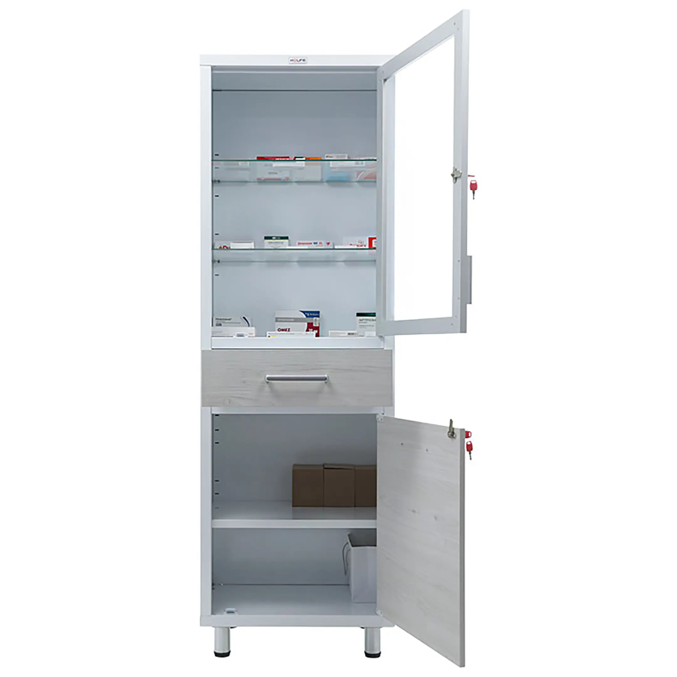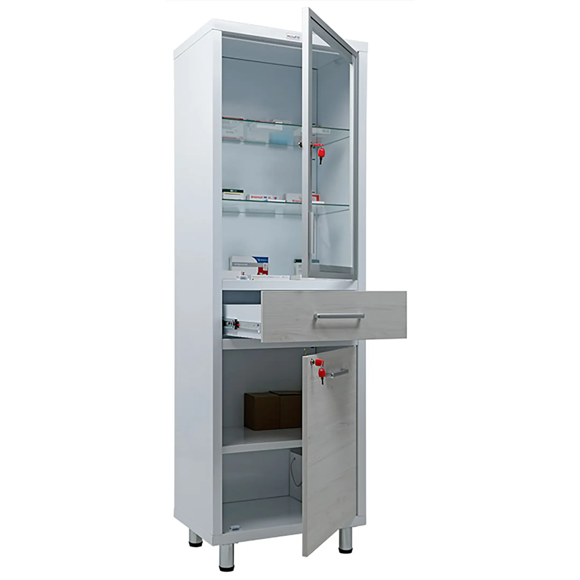 Предназначены для хранения медикаментов, инструментов,больничных документов, карточек пациентов в медицинских учреждениях и организациях.