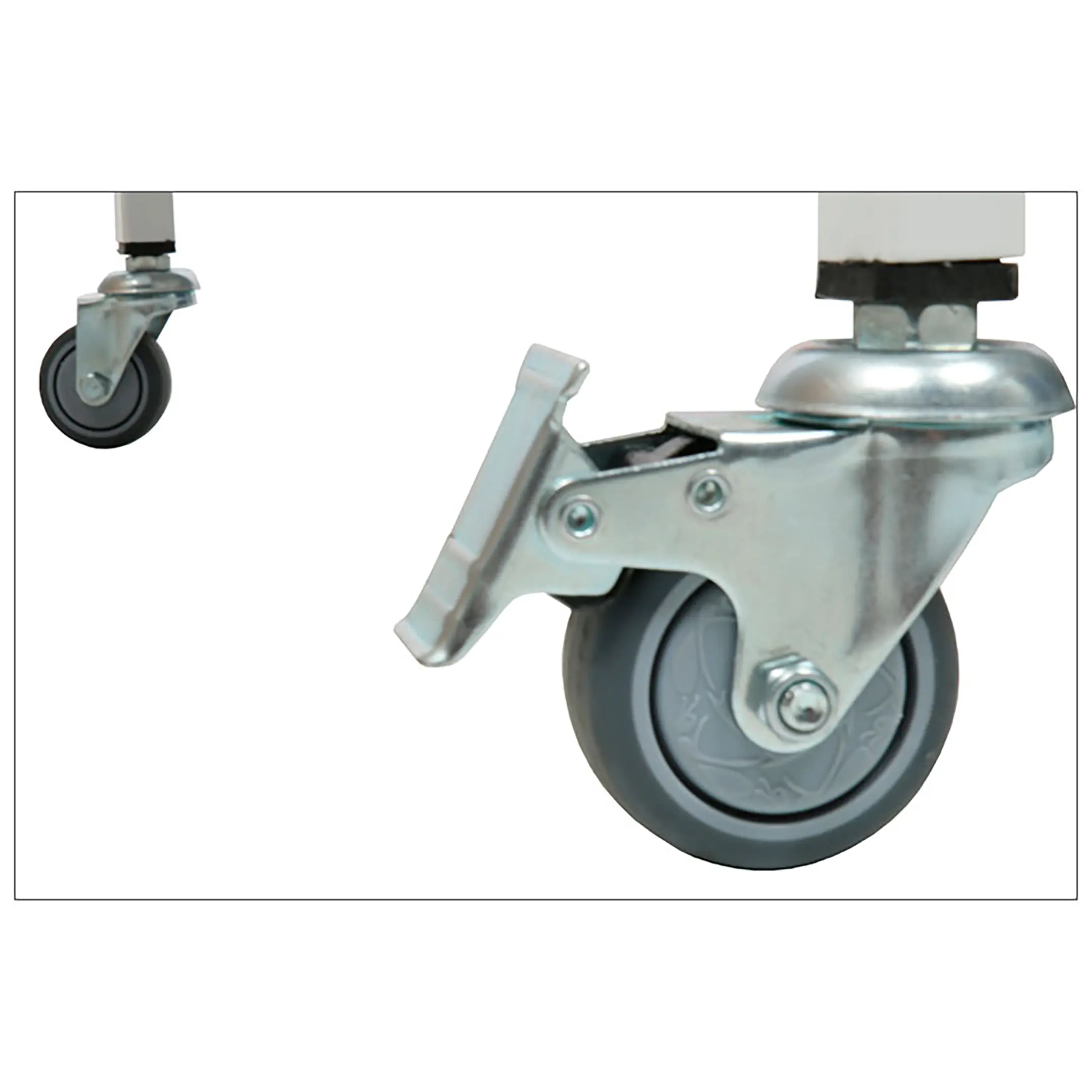 - столик процедурный имеет 4 колеса из немаркой резины, D= 50 мм. Два колеса снабжены тормозом
