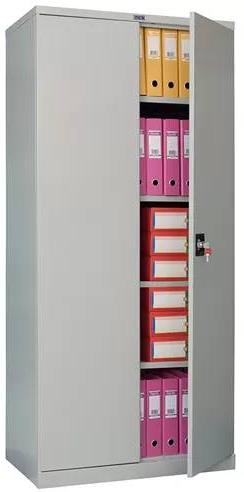предназначены для хранения большого объема документов изделия сертифицированы на соответствие требованиям ГОСТ 16371-2014 ригели из оцинкованной стали и пластиковые втулки обеспечивают бесшумный ход дверей и надежное запирание шкафа комплектуются ключевыми замками с ручками (Burg GSC813) 5 уровней хранения (4 полки в комплекте) максимальная нагрузка на полку - 60 кг поставляются в разобранном виде