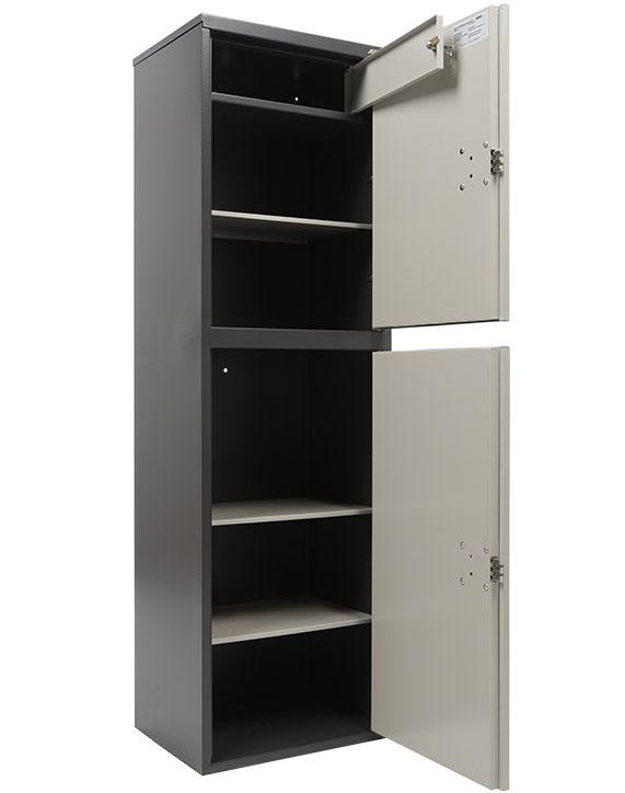 Шкафы предназначен для хранения документов в офисе. Сварная конструкция из листовой стали, толщина стали 1,2мм. Комплектуется ключевым замком Практик. Внутри шкафов есть трейзер, полки съемная, регулируемые по высоте полка. Тип покрытия - порошковое, цвет светло-серый структурированный.
