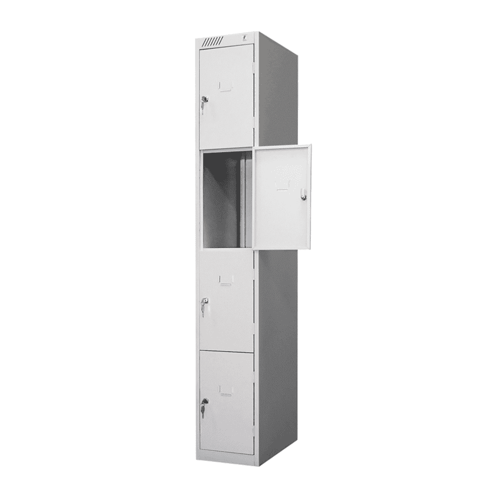 Дополнительные секции (дс) поставляются без левой стенки, т.к. имеют общую боковую стенку с соседней секцией, а количество дополнительных секций может быть неограниченно. Модульный шкаф для сумок ШРС-14-300 состоит из одной секции, четырех ячеек. Комплектуется четырьмя замками повышенной секретности. Окрашен порошковой (полимерной) краской, цвет светло-серый RAL 7035. Шкаф сборный, собирается при помощи винтов и саморезов, поставляется в разобранном виде, упакованный в гофрокартон.