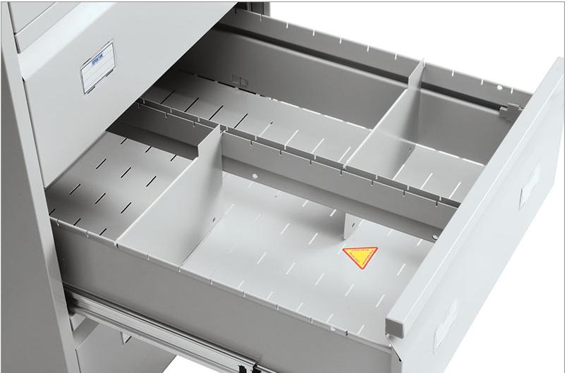 Оборудованы антиопрокидывающим устройством, не позволяющим одновременно выдвигать более чем один ящик.
