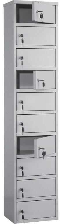 предназначены для индивидуального хранения пломбиров, печатей и личных денег кассиров спроектированы согласно инструкции ЦБ № 318-П каждое отделение комплектуется ключевым замком предусмотрено крепление к стене поставляются в собранном виде декларация о соответствии: Техническому регламенту Таможенного союза. «О безопасности мебельной продукции ТР ТС 025/2012» Сертификат соответствия Ростест