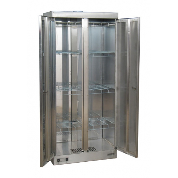 Сушильный шкаф ШСО 2000 предназначен для сушки мокрой одежды, обуви, белья, а также различной спортивной формы и инвентаря. Имеет 2 двери закрывающиеся на замок. Оснащен съёмными сетчатыми полками, которые позволяют рационально использовать внутреннее пространство шкафа (сушить одежду практически любой длины). Шкаф можно подсоединить к вытяжной вентиляции. Для этого на крыше шкафа имеется фланец для подсоединения гофротрубы. Цвет RAL 7035 Питание 220В / 50ГцПотребляемая мощность:эл/двигатель – 60 Втнагревательный элемент – 2000 ВтЗащита от перегрева: естьРежимы сушки: До 40гр, до 60гр, проветриваниеТаймер: 4 часа, бесконечностьУровень шума: не более 55 дБПроизводительность вентилятора 360 м3/чОплачивайте покупки удобным способом. В интернет-магазине доступно 3 варианта оплаты: