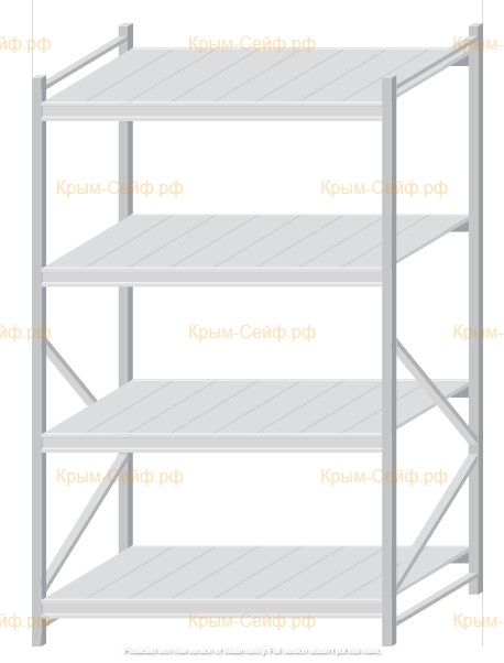 - Легко собираемая и разбираемая конструкция, которая состоит из вертикальных рам (оцинкованные), закрепленных на них горизонтальных балок (окрашенные) и разборных полок (оцинкованные).