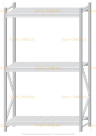 - Легко собираемая и разбираемая конструкция, которая состоит из вертикальных рам (оцинкованные), закрепленных на них горизонтальных балок (окрашенные) и разборных полок (оцинкованные).