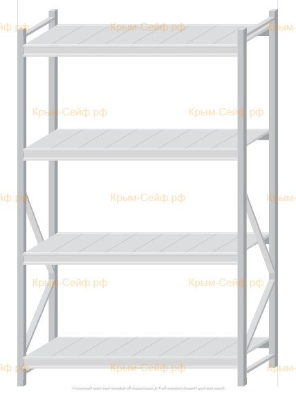 - Легко собираемая и разбираемая конструкция, которая состоит из вертикальных рам (оцинкованные), закрепленных на них горизонтальных балок (окрашенные) и разборных полок (оцинкованные).