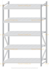 - Легко собираемая и разбираемая конструкция, которая состоит из вертикальных рам (оцинкованные), закрепленных на них горизонтальных балок (окрашенные) и разборных полок (оцинкованные).