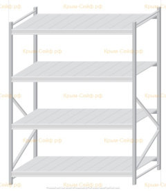 - Легко собираемая и разбираемая конструкция, которая состоит из вертикальных рам (оцинкованные), закрепленных на них горизонтальных балок (окрашенные) и разборных полок (оцинкованные).