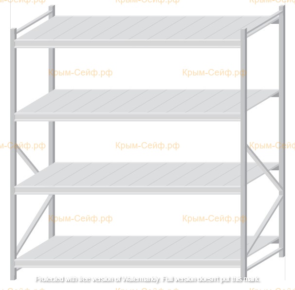 - Легко собираемая и разбираемая конструкция, которая состоит из вертикальных рам (оцинкованные), закрепленных на них горизонтальных балок (окрашенные) и разборных полок (оцинкованные).