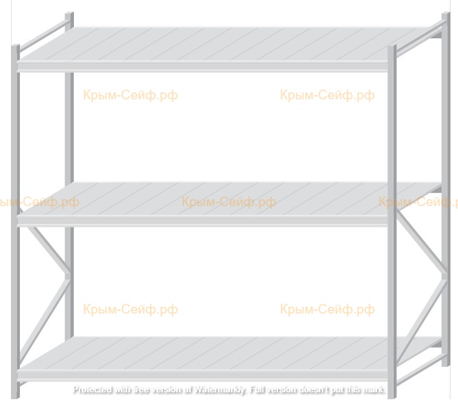 - Легко собираемая и разбираемая конструкция, которая состоит из вертикальных рам (оцинкованные), закрепленных на них горизонтальных балок (окрашенные) и разборных полок (оцинкованные).