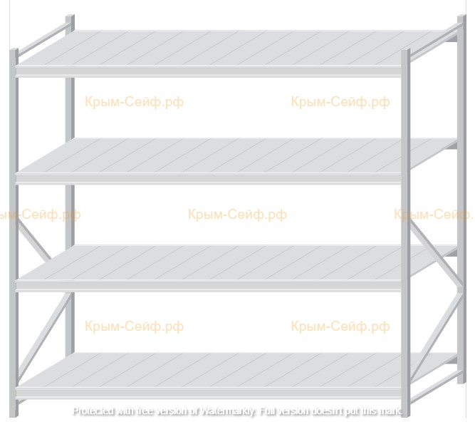 - Легко собираемая и разбираемая конструкция, которая состоит из вертикальных рам (оцинкованные), закрепленных на них горизонтальных балок (окрашенные) и разборных полок (оцинкованные).