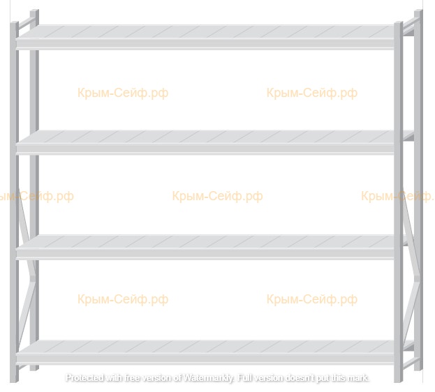 - Легко собираемая и разбираемая конструкция, которая состоит из вертикальных рам (оцинкованные), закрепленных на них горизонтальных балок (окрашенные) и разборных полок (оцинкованные).