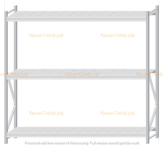- Легко собираемая и разбираемая конструкция, которая состоит из вертикальных рам (оцинкованные), закрепленных на них горизонтальных балок (окрашенные) и разборных полок (оцинкованные).