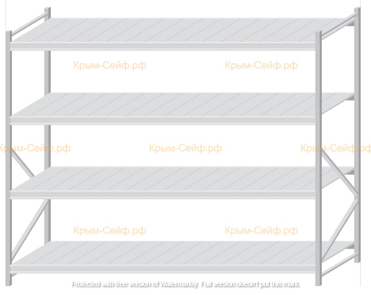 - Легко собираемая и разбираемая конструкция, которая состоит из вертикальных рам (оцинкованные), закрепленных на них горизонтальных балок (окрашенные) и разборных полок (оцинкованные).