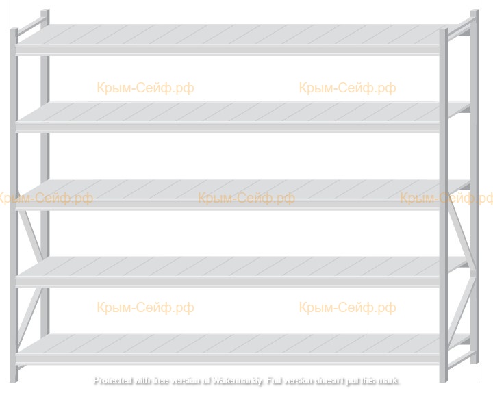 - Легко собираемая и разбираемая конструкция, которая состоит из вертикальных рам (оцинкованные), закрепленных на них горизонтальных балок (окрашенные) и разборных полок (оцинкованные).