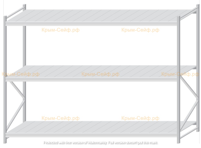 - Легко собираемая и разбираемая конструкция, которая состоит из вертикальных рам (оцинкованные), закрепленных на них горизонтальных балок (окрашенные) и разборных полок (оцинкованные).