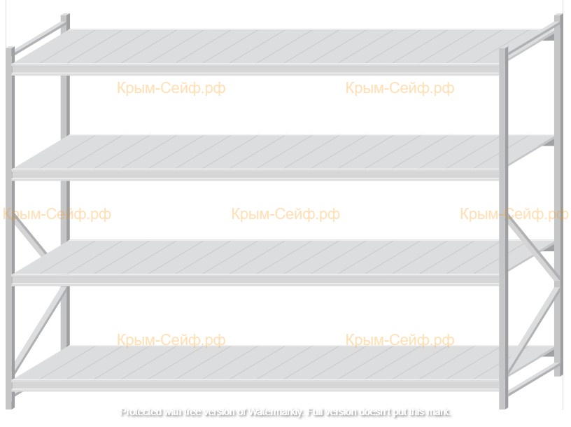 - Легко собираемая и разбираемая конструкция, которая состоит из вертикальных рам (оцинкованные), закрепленных на них горизонтальных балок (окрашенные) и разборных полок (оцинкованные).