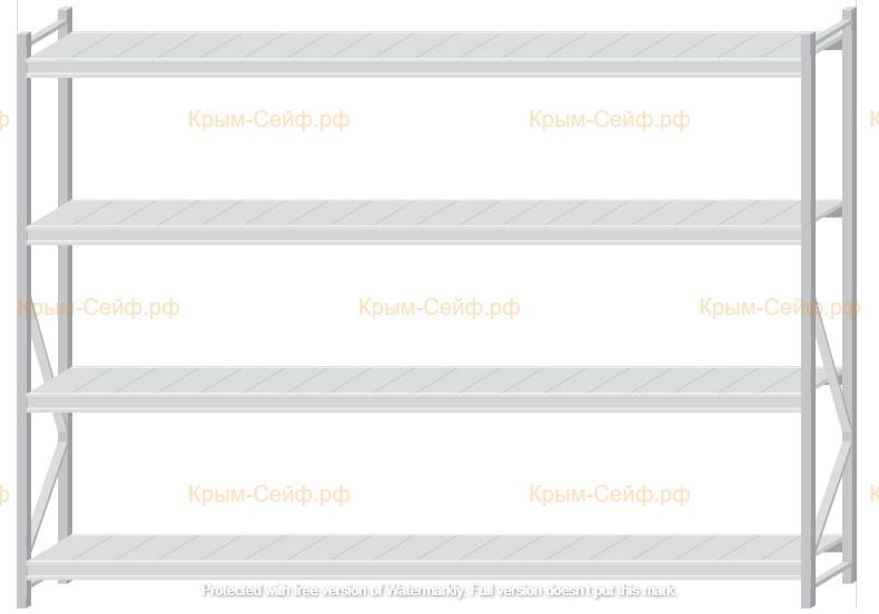- Легко собираемая и разбираемая конструкция, которая состоит из вертикальных рам (оцинкованные), закрепленных на них горизонтальных балок (окрашенные) и разборных полок (оцинкованные).