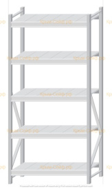- Легко собираемая и разбираемая конструкция, которая состоит из вертикальных рам (оцинкованные), закрепленных на них горизонтальных балок (окрашенные) и разборных полок (оцинкованные).