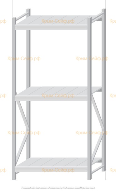 - Легко собираемая и разбираемая конструкция, которая состоит из вертикальных рам (оцинкованные), закрепленных на них горизонтальных балок (окрашенные) и разборных полок (оцинкованные).