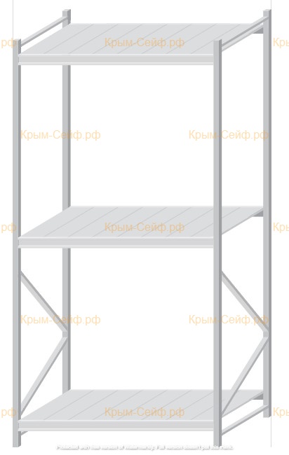 - Легко собираемая и разбираемая конструкция, которая состоит из вертикальных рам (оцинкованные), закрепленных на них горизонтальных балок (окрашенные) и разборных полок (оцинкованные).