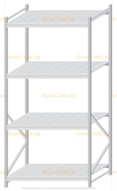 - Легко собираемая и разбираемая конструкция, которая состоит из вертикальных рам (оцинкованные), закрепленных на них горизонтальных балок (окрашенные) и разборных полок (оцинкованные).