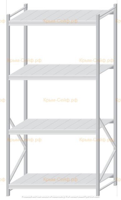 - Легко собираемая и разбираемая конструкция, которая состоит из вертикальных рам (оцинкованные), закрепленных на них горизонтальных балок (окрашенные) и разборных полок (оцинкованные).