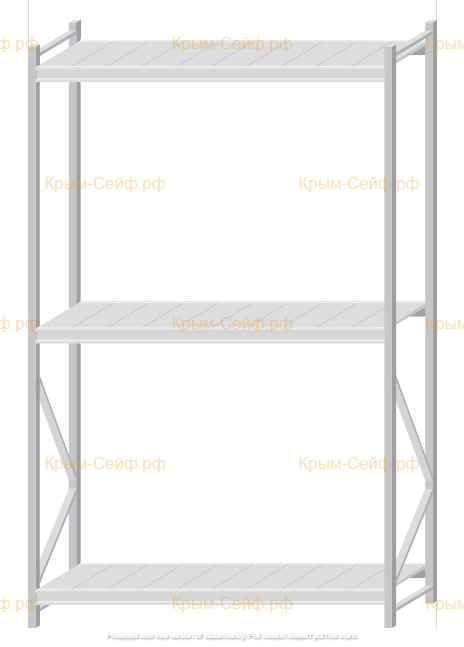 - Легко собираемая и разбираемая конструкция, которая состоит из вертикальных рам (оцинкованные), закрепленных на них горизонтальных балок (окрашенные) и разборных полок (оцинкованные).