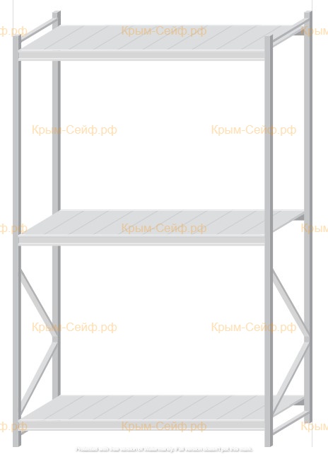 - Легко собираемая и разбираемая конструкция, которая состоит из вертикальных рам (оцинкованные), закрепленных на них горизонтальных балок (окрашенные) и разборных полок (оцинкованные).
