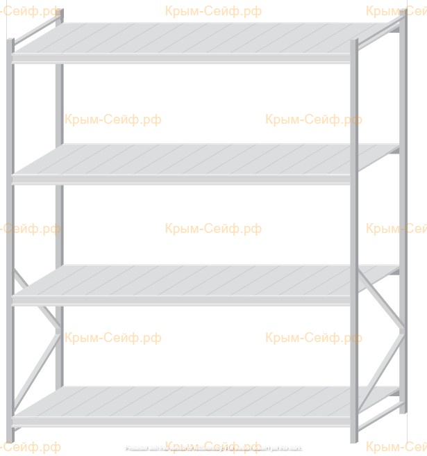 - Легко собираемая и разбираемая конструкция, которая состоит из вертикальных рам (оцинкованные), закрепленных на них горизонтальных балок (окрашенные) и разборных полок (оцинкованные).