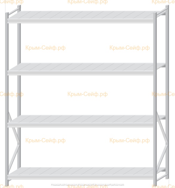 - Легко собираемая и разбираемая конструкция, которая состоит из вертикальных рам (оцинкованные), закрепленных на них горизонтальных балок (окрашенные) и разборных полок (оцинкованные).