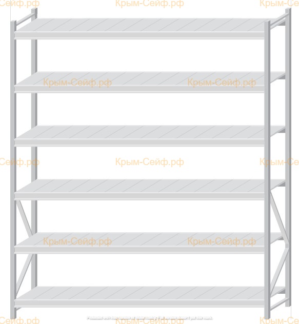 - Легко собираемая и разбираемая конструкция, которая состоит из вертикальных рам (оцинкованные), закрепленных на них горизонтальных балок (окрашенные) и разборных полок (оцинкованные).