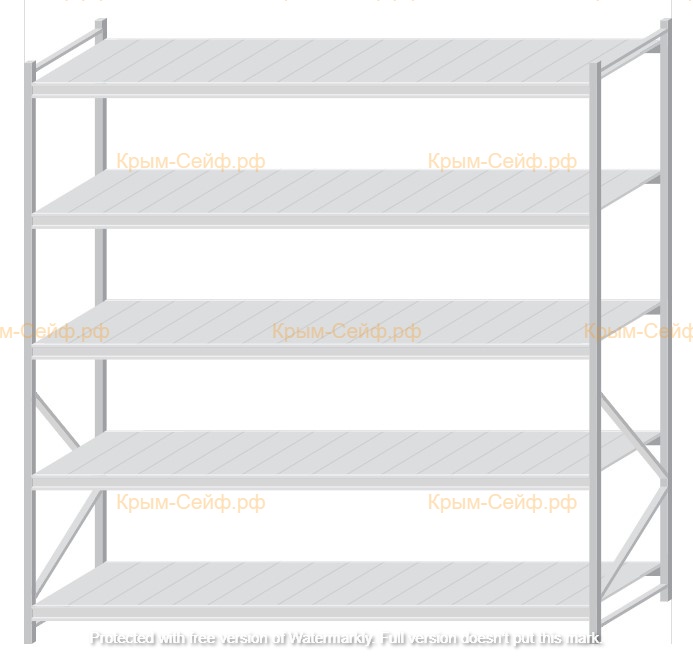 - Легко собираемая и разбираемая конструкция, которая состоит из вертикальных рам (оцинкованные), закрепленных на них горизонтальных балок (окрашенные) и разборных полок (оцинкованные).