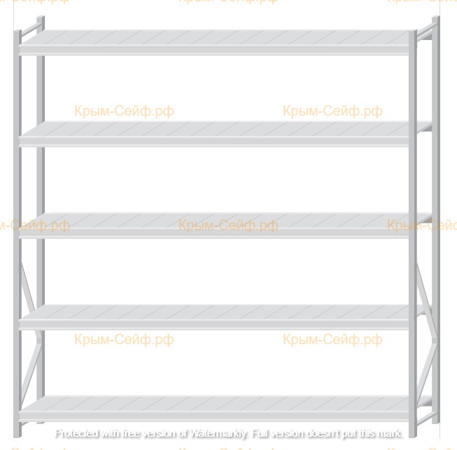 - Легко собираемая и разбираемая конструкция, которая состоит из вертикальных рам (оцинкованные), закрепленных на них горизонтальных балок (окрашенные) и разборных полок (оцинкованные).