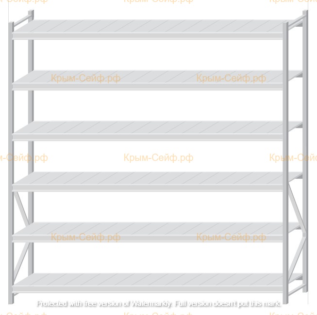 - Легко собираемая и разбираемая конструкция, которая состоит из вертикальных рам (оцинкованные), закрепленных на них горизонтальных балок (окрашенные) и разборных полок (оцинкованные).