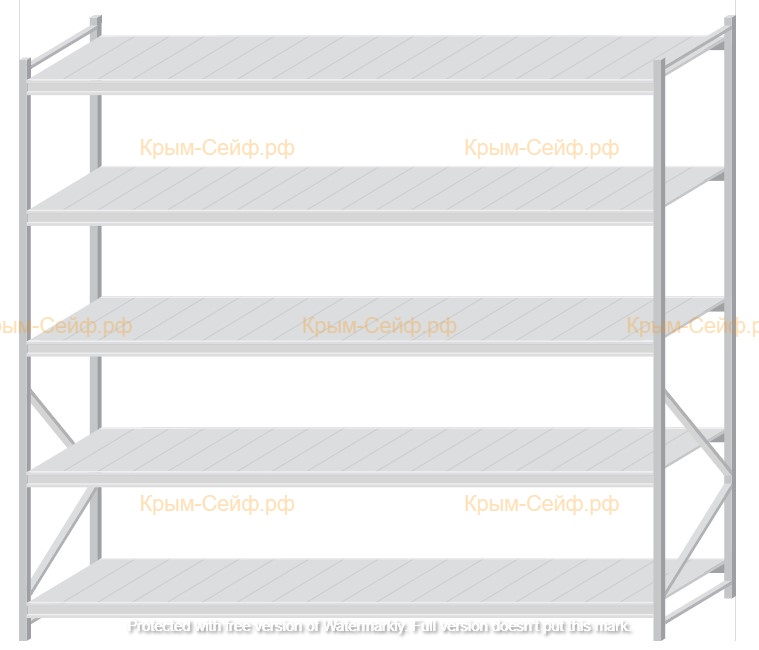- Легко собираемая и разбираемая конструкция, которая состоит из вертикальных рам (оцинкованные), закрепленных на них горизонтальных балок (окрашенные) и разборных полок (оцинкованные).