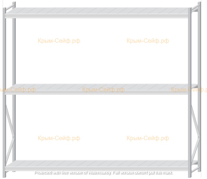 - Легко собираемая и разбираемая конструкция, которая состоит из вертикальных рам (оцинкованные), закрепленных на них горизонтальных балок (окрашенные) и разборных полок (оцинкованные).