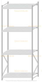 - Легко собираемая и разбираемая конструкция, которая состоит из вертикальных рам (оцинкованные), закрепленных на них горизонтальных балок (окрашенные) и разборных полок (оцинкованные).