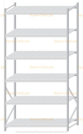 - Легко собираемая и разбираемая конструкция, которая состоит из вертикальных рам (оцинкованные), закрепленных на них горизонтальных балок (окрашенные) и разборных полок (оцинкованные).