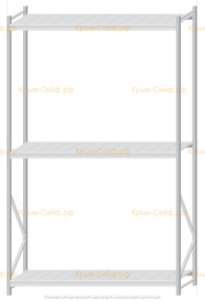 - Легко собираемая и разбираемая конструкция, которая состоит из вертикальных рам (оцинкованные), закрепленных на них горизонтальных балок (окрашенные) и разборных полок (оцинкованные).
