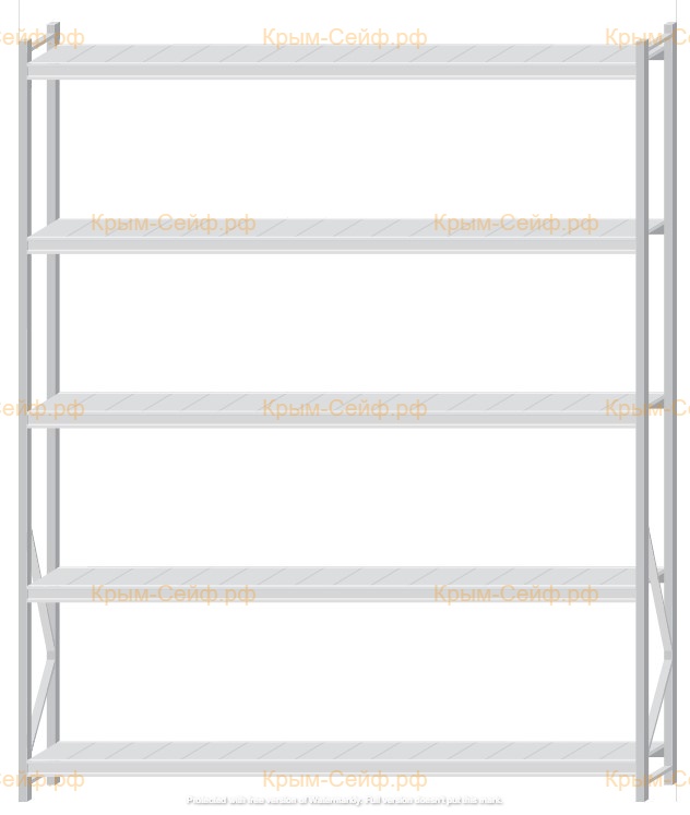 - Легко собираемая и разбираемая конструкция, которая состоит из вертикальных рам (оцинкованные), закрепленных на них горизонтальных балок (окрашенные) и разборных полок (оцинкованные).