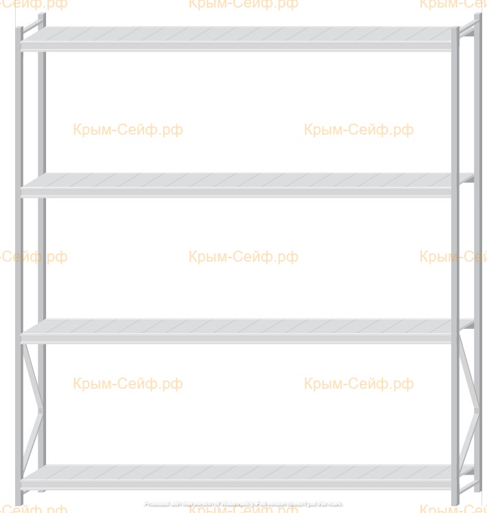 - Легко собираемая и разбираемая конструкция, которая состоит из вертикальных рам (оцинкованные), закрепленных на них горизонтальных балок (окрашенные) и разборных полок (оцинкованные).