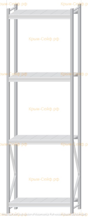 - Легко собираемая и разбираемая конструкция, которая состоит из вертикальных рам (оцинкованные), закрепленных на них горизонтальных балок (окрашенные) и разборных полок (оцинкованные).