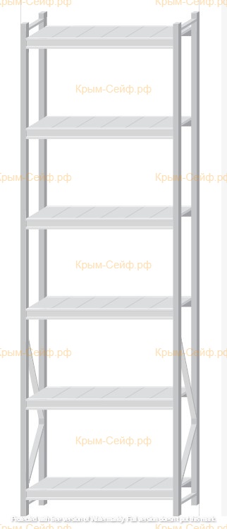 - Легко собираемая и разбираемая конструкция, которая состоит из вертикальных рам (оцинкованные), закрепленных на них горизонтальных балок (окрашенные) и разборных полок (оцинкованные).